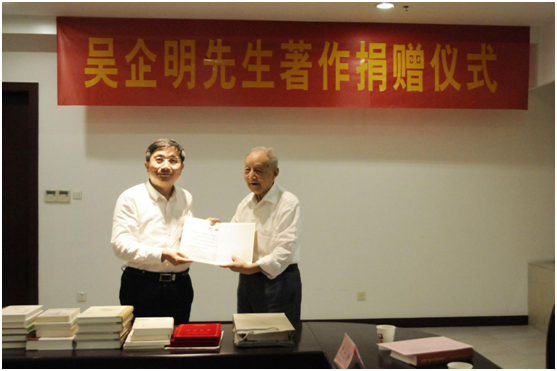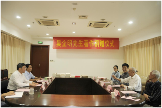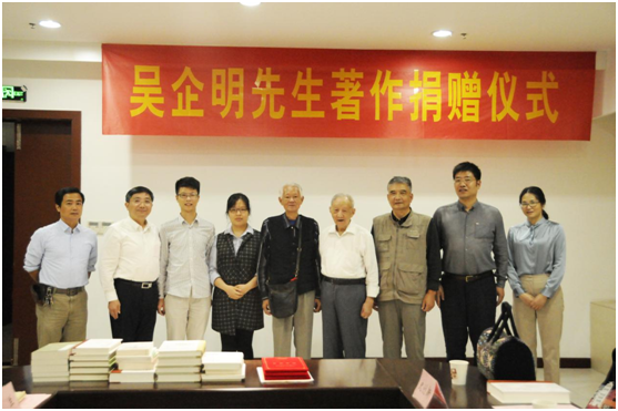 捐赠仪式上,杨旭辉深情回忆了吴企明先生教书育人的往事,表达了对恩师的由衷敬意!他指出,在退休以来的二十余年里,吴企明老师坚持以良好的心态、昂扬的精神乐观生活,勤奋钻研,笔耕不辍,著书三十多部,堪称后辈文学研究者的楷模。