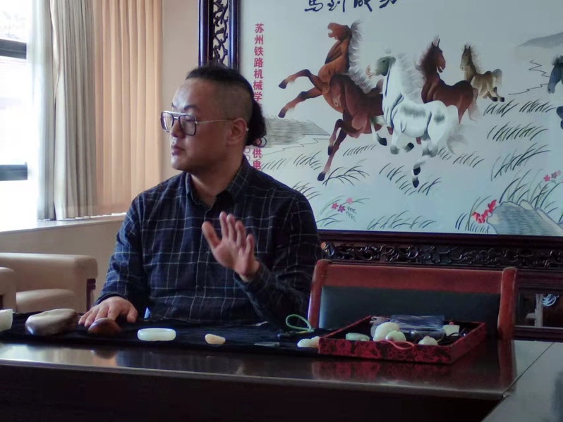 宁英杰从玉器实物切入,为观众解读中国寓意深远的玉文化。由“他山之石,可以攻玉”的古语谈到了和田玉的起源、分类(山料与籽料),详细介绍了和田玉的鉴别方法与玉器艺术鉴赏。他指出,玉中精品和田玉即昆仑山系闪玉,硬度高是它的本质特征。他将一件件玉器实物与在座师生们比照讲解,就和田玉的鉴别、玉的皮色和沁色等问题进行了讨论交流,大家获益匪浅,相关业务知识得到了较好的提升。