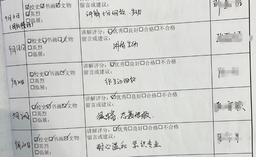 培训结束后,各位志愿者都填写了培训反馈,培训效果显著。何研等老志愿者主动承担老带新的任务,以张钰玮为代表的新志愿者能快速掌握讲解词甚至额外承担了长洲县学纪念馆的讲解,胡孟云等多位志愿者主动承担多次排班以外的讲解任务,博物馆志愿者团队蓬勃发展。
