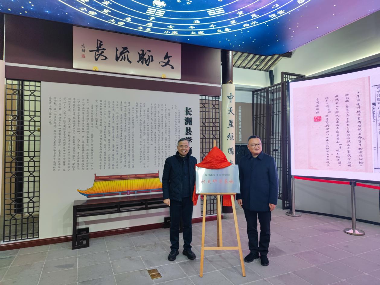 沈明荣和金一民共同为“苏州市平江实验学校校史研学基地”揭牌。