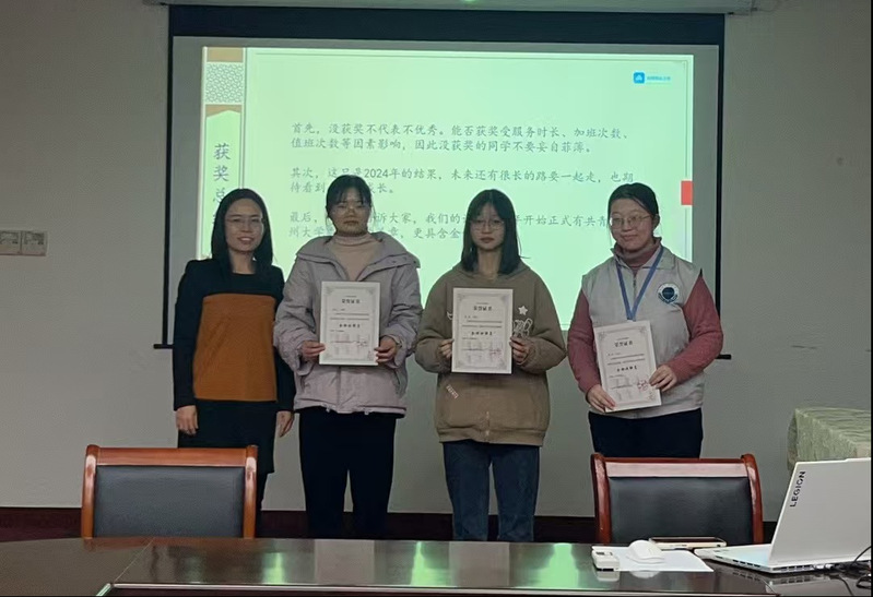 第一个环节是年度工作总结。团队服务方面,2024年我们的志愿者队伍不断壮大,先后有10位新成员加入,服务质量和服务水平持续提升,志愿者们共计完成讲解322次,其中主动服务75次、非工作时段服务85次。每一次数据的累计都是志愿者们平时一次次付出构成的。团队赋能方面,本年度博物馆共计组织集体培训3场、单独培训16次、讲解考核21次、集体活动2次(西山古村落团建培训,三全育人以文化人)。多种形式的培训与集体活动不仅提升了学生的讲解能力还增进了师生之间的情感交流,提升了志愿者团队与博物馆的粘性。在团队管理方面,新增学生档案管理,使得志愿者每一份付出都得到了肯定。各项制度流程的修订与落实使得每一项工作有据可依。今后的志愿者工作要继续保持用数据说话的工作态度和用爱和理解来相处的工作氛围,使团队更加健康向上发展。