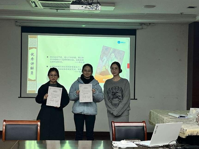 博物馆的老师们对志愿者们在博物馆持续服务年限、出勤率、讲解次数及服务质量、在馆内开展的各项活动和其他工作的情况进行了评定,评选出了3位金牌讲解员、5位优秀讲解员、1位新星讲解员,并为荣誉称号获得者颁奖。