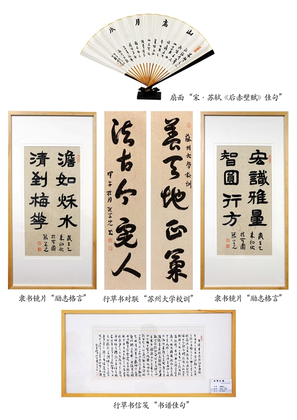 “苏园风雅”部分,以文学和书法两种艺术形式再现了苏州园林的风雅。《苏园记》,选择了八座苏州古典园林,全面展现了苏州园林深厚的历史文化内蕴,其中既有拙政园、留园、网师园这样的名园,也有集聚着“先忧后乐”人生情怀的天平山庄。更值得注意的是,作品第一次全面深刻地彰显了苏州大学校内可园所承载的“弦歌不辍”的历史人文精神。