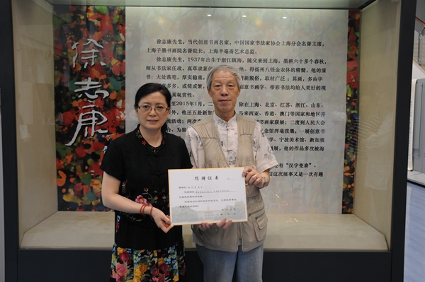 艺与神游――徐志康书画艺术展”而创作的。我校博物馆常务副馆长黄维娟接受了捐赠,并为徐志康颁发了捐赠证书。